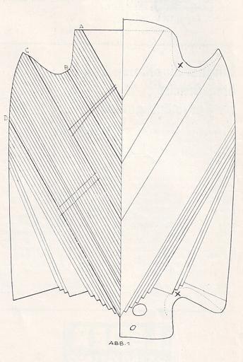 | Keywords: Biber-Mantel-Verarbeitung 1 - Auslassschnitte + Rückentfernung.jpg Bibermantel-Verarbeitung Teil 1 Zur Mantel- bzw Jackenverarbeitung findet ausschließlich der gerupfte und tiefgeschorene Biber Verwendung Dieses weiche geschmeidige im Farbton warme Material erfreut sich bei der Damenwelt besonderer Beliebtheit und man nimmt das u U erheblichere Gewicht gern in Kauf Wie alle Wassertiere weist auch Biber außergewöhnliche Tragfähigkeit auf Ich möchte die der Biberverarbeitung anhaftende Problematik gleich anfangs entschärfen denn wie bei der gesamten Fellverarbeitung garantiert eine entsprechend peinlich genaue Vorarbeit ein leichtes unkompliziertes Gelingen Biber ist ein Material welches in dreifacher zweifacher und einfacher Schattierung anfällt d h dass bei der Verarbeitung die entsprechenden Farbgrenzen berücksichtigt werden sollten welche dann einen doppel M- dreifache Schattierung einen M- zweifache Schattierung oder einen A-Schnitt einfache Schattierung erfordern Meist sind die Farbgrenzen jedoch nicht so gravierend so dass der A-Schnitt dem Material immer gerecht wird Es sei denn dass die Seite im ganzen Streifen durchlaufen soll dann ist der W-Schnitt angebracht Auf die einzelnen Schnittarten einzugehen würde den Rahmen dieses Aufsatzes sprengen denn es ist sekundär welche Schnittart wir wählen weil in erster Linie hier die Verarbeitungsmethode im allgemeinen behandelt wird Das Eingehen auf das Besondere der Schnittformen ist daher überflüssig da sie an der Gesamtkonzeption nichts ändern würde Die Sortimente die uns der Händler zur Verfügung stellt sind durchweg in ihrer Abstufung sehr sauber so dass wir in dieser Hinsicht schon einen guten Start haben Biberfelle haben eine Länge von 50 bis höchstens 90 cm und es sei hier vorweggenommen dass jeder Versuch Biber einzuschneiden von vornherein zum Tode verurteilt ist Die Haarbeschaffenheit und die Farbe ist oft so fein nuanciert dass man anfangs geneigt ist diesen Versuch zu wagen Meist wird man aber nach dem Nähen die Fehlspekulation leicht erkennen Diese Feststellung zwingt ergo dazu uns nicht mit dem Fell nach dem Muster sondern mit dem Muster nach dem Fell zu richten also erst aufzwecken und dann das Muster einteilen Zuvor aber erst noch einige Worte über das Fell selbst Die der Biberverarbeitung anhaftende Problematik hat ihren Grund darin dass das Biberfell eine recht unterschiedliche Haarbeschaffenheit Haarlänge aufweist Dem ist jedoch durch entsprechende Markierung vorzubeugen denn diese bezieht sich meist auf den Haarlängenabfall der Vorder- bzw Hinterklauen Abb X Die Haarqualität lässt sich leicht durch die Beschaffenheit des Grotzens erkennen Je dichter und gedrungener der Grotzen desto besser das Fell Je flacher und flattriger der Grotzen desto minderwertiger das Fell Die Seiten sind in den meisten Fällen immer von gedrungener und fester Haarqualität Ein wichtiger Punkt sei noch vermerkt dass das Leder der Seiten von einer starken Dehnbarkeit ist das Leder der Grotzenpartie hingegen eine gewisse Festigkeit aufweist Dieses zu bemerken ist für die Näharbeit nicht unbedeutend denn wird diese Eigenart nicht berücksichtigt so entstehen oft ausgelassene Streifen deren Seiten durch die erhebliche Dehnbarkeit sehr wellig sind Es kommen wie schon erwähnt Sortimente verschiedener Größen zur Verarbeitung und somit möchte ich auch die entsprechende Fellzahl differieren 12 bis 18 Felle werden für einen Mantel benötigt Für die nachfolgende Berechnung hat die Fellzahl jedoch keine Bedeutung 1 Anbrachen Die Vorderklauenlöcher werden zum Kopf zu aufgeschnitten Beim Anbrachen berücksichtigt man besonders die Farbgrenzen Die Rückung der entsprechenden Anbrachzunge ist von der jeweiligen Haarlänge der schadhaften Stelle abhängig und ich möchte mich auch hier auf die alte Kürschner-Faustregel berufen dass man beim Auslassen und Anbrachen nie mehr als die entsprechende Haarlänge anzeigt rückt 2 Vorzwecken Bei einem qualitativ guten Bibersortiment kann man die Felle ohne weiteres gut auszwecken Die Felle werden peinlich eingestrichen Unter peinlich ist hier gemeint dass kein Wasser oder Wasser mit entsprechenden Zusätzen an das Haar kommt denn alle lüstrierten Felle Biber Nutria sind gegen Wasser äußerst empfindlich und es erscheinen an den Stellen wo Wasser an das Haar kommt stumpfe Wasserstellen welche dann immer beim fertigen Stück eine entsprechende Nachbehandlung erfordern Haben die Felle genügend gefattet so werden sie aufgezweckt Um sich die weitere Arbeit etwas zu erleichtern ist zu empfehlen dass man beim Zwecken die Felle möglichst auf eine rechteckige Form bringt Beim Vorzwecken sei noch darauf hingewiesen dass man die Felle normal d h mit dem Leder nach oben zweckt Die äußersten Seiten sind oft etwas morsch im Leder und verpflichten ergo zu einer besonderen Sorgfalt Sind alle Felle aufgezweckt so werden sie hochgehoben so dass sich das Haar nicht verdrückt Verdrücktes Haar wird sich zwar bei der weiteren Verarbeitung wieder erholen aber es würde die nachfolgende Sortierarbeit sehr erschweren Nachdem die Felle aufgezweckt und hochgehoben sind wird das Leder mit Kartoffelmehlstärke bestrichen Hierbei berücksichtigt man hinsichtlich der Intensität besonders die schon oben erwähnten leicht dehnbaren Seiten 3 Markieren Nach dem Abzwecken werden Grotzen sowie die flachen Stellen der Vorder- und Hinterklauenstellen peinlich genau markiert und auf das Leder übertragen Wir erhalten somit die eigentlich nutzbare Fläche Abb 1 Eine Inhaltsberechnung der nutzbaren Fellfläche ist für die folgende Mustereinteilung wichtig 4 Einteilen des Schnittes Hierbei ist von vornherein zu berücksichtigen dass am Armloch Ärmelübergang Grotzen ist Rauchenangleichungen lassen sich bei Biber am Grotzen immer leichter als in der Seite überbrücken und aus dieser Erfahrung heraus geht man bei der Mustereinteilung vom Armloch aus Es ist somit völlig unbedeutend ob in der Rückenmitte 