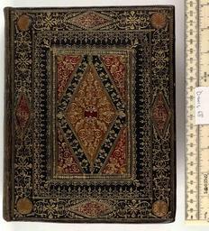 | Keywords: Bible -bound with Psalmes- - Upper cover (Davis68).jpg Style Panel design Lozenge or diamond Pointille comprising dots Thistle; Caption Upper cover; Colour Black Red Brown; Edge Gilt gauffered and painted exhibition history Decorative Technique Tooled in gold Onlaid; Cover Material Goatskin includes morocco turkey etc The edges have been elaborately decorated with images of fruit and flowers The spine is smooth and onlaid in red and tooled in gold Combmarbled endleaves Traces of a silk ribbon marker 2 headbands may be false with tie down threads perished object history Text after 1640 ; Amsterdam; Unspecified object type Cc-zero place of creation Binding England place of discovery See M M Foot The Henry Davis Gift vol II London 1983 British Library image http //www bl uk/catalogues/bookbindings/LargeImage aspx RecordId 020-000003292 ImageId ImageId 41251 Copyright BL Bible bound with Psalmes Uploaded with GWToolset Bible bound with Psalmes - Upper cover Davis68 http //www webarchive org uk/bldatasets/bindings/5749_4 jpg Bookbinding 17th-century bookbinding British Library Bookbindings |