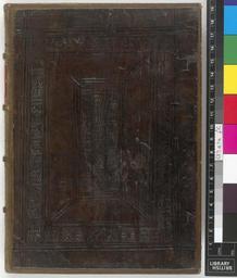 | Keywords: Biblicæ Historiæ, artificiosissime` depictæ. - Upper cover (68300000000000000).jpg Style Panel design; Caption Upper cover; Colour Brown; Edge Unspecified exhibition history Decorative Technique Tooled in blind; Cover Material Goatskin includes morocco turkey etc From the library of Revd Clayton Mordaunt Cracherode 1730-1799 Rebound with original binding onlaid May be English Blind tooled roll object history Text 1507; Frankfurt; Unspecified object type Cc-zero place of creation Binding England place of discovery See J B Oldham English Blind-Stamped Bindings Cambridge 1952 plate XLII roll FPf 6 679 British Library image http //www bl uk/catalogues/bookbindings/LargeImage aspx RecordId 020-000011642 ImageId ImageId 45426 Copyright BL Biblicæ Historiæ artificiosissime` depictæ Uploaded with GWToolset Biblicæ Historiæ artificiosissime` depictæ - Upper cover 68300000000000000 http //www webarchive org uk/bldatasets/bindings/12626_4 jpg Bookbinding 16th-century bookbinding British Library Bookbindings |