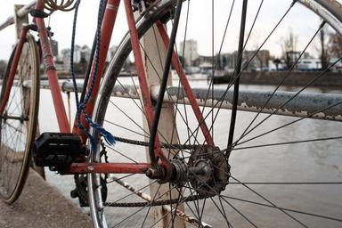 Keywords: bicycle river water spring bridge