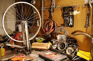 Keywords: Bicycle wheel truing stand.jpg en Workshop with pegboard bicycle wheel truing stand and tools 2006-12-14 15 23 38 own Foxtod cc-zero Uploaded with UploadWizard Uncategorized 2014 August 7
