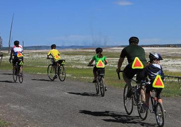 Keywords: bicyclists family riding yellowstone national park wyoming bike sport cycle riders cyclists travel recreation sporting leisure lifestyle thermal springs usa
