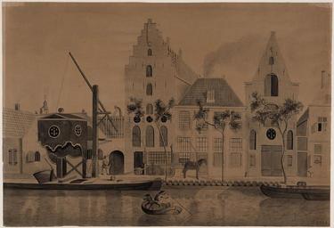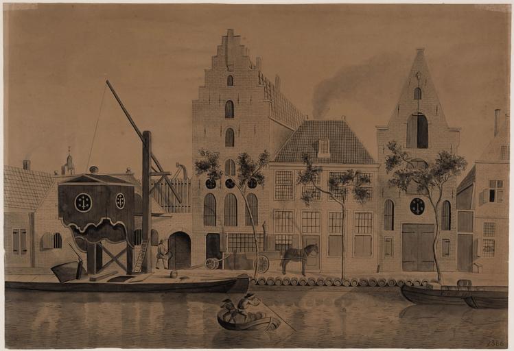 | Keywords: bruinvis alkmaar monochrome Catalogusnummer: PR 1002386 Plaats: Alkmaar Beschrijving: De bierbrouwerij het Wapen van Haarlem of het Zwaard gelegen tegenover het Wildemanshofje. Met houten kraan waarop afgebeeld het wapen van Haarlem (evenals op de gevels). Biervaten op de wal, en het vervoer van de vaten te water en op de kade. Datering: 1842 naar de situatie van 1790. Vervaardiger: Bruinvis, C.W. Catalogusnummer: PR 1002386 Plaats: Alkmaar Beschrijving: De bierbrouwerij het Wapen van Haarlem of het Zwaard gelegen tegenover het Wildemanshofje. Met houten kraan waarop afgebeeld het wapen van Haarlem (evenals op de gevels). Biervaten op de wal, en het vervoer van de vaten te water en op de kade. Datering: 1842 naar de situatie van 1790. Vervaardiger: Bruinvis, C.W. |