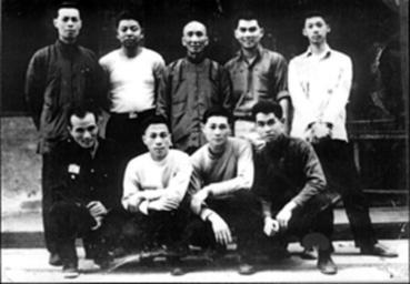 Keywords: Big 05.gif en Master Chow Tze Chuen with his colleagues of Koowloon Motor Bus Hong Kong propriété de Chow Tze Chuen 1958 PD-old Black and white group photographs of men Group portraits with 9 persons Group portraits in 2 rows