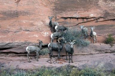 Keywords: big horn sheep colorado mountain mountainside wildlife animals outside outdoors group herd