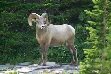 MAKE A MEME View Large Image Bighorn sheep move in groups in Glacier's alpine and east side. Rams grow enormous horns (which differ from antlers in that they do not drop off yearly) that they use to batter each other during the rut every fall in competitions for mates. ...