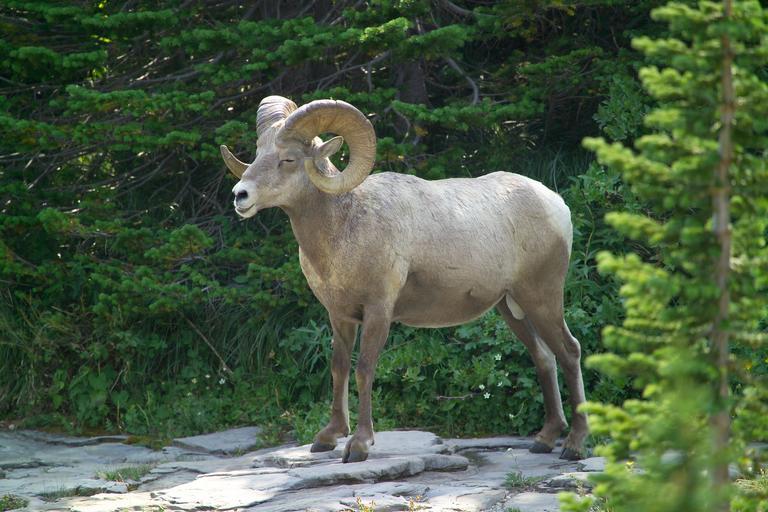 MAKE A MEME View Large Image Bighorn sheep move in groups in Glacier's alpine and east side. Rams grow enormous horns (which differ from antlers in that they do not drop off yearly) that they use to batter each other during the rut every fall in competitions for mates. ...