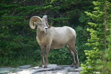 MAKE A MEME View Large Image Bighorn sheep move in groups in Glacier's alpine and east side. Rams grow enormous horns (which differ from antlers in that they do not drop off yearly) that they use to batter each other during the rut every fall in competitions for mates. ...