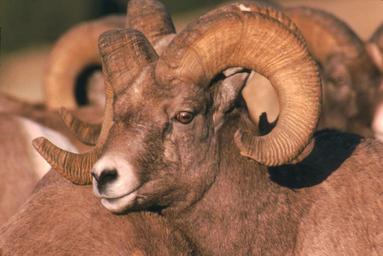Keywords: bighorn sheep male wildlife nature wild head standing looking portrait profile horns wilderness herd