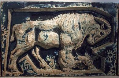 | Keywords: Bigot - Ram - Detail from the animal frieze series of the Porte Monumentale, Paris Universal Exposition, 1900.jpg object history Paris Universal Exposition 1900 credit line accession number own ; Photo by Szilas in the Budapest Museum of Applied Arts; temporary exhibition of the Bigot-pavilion May-September 2013 PD-old-100 Commonist Bigot-pavilion - Exhibition of the Budapest Museum of Applied Arts in 2013 Art Nouveau tiles Rams in art | ||||