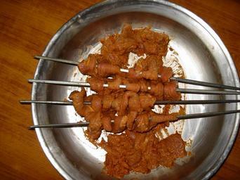 Keywords: Bihari Kabab on Seekhs in sewing manner.JPG en Bihari Kabab own Miansari66 Cc-zero Bihari kabab