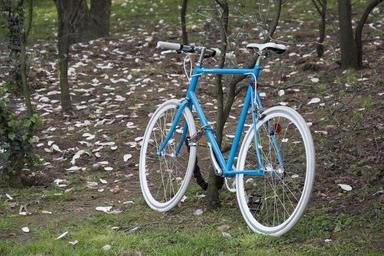 Keywords: bike blue bicycle cycle ride wheel biking outdoor summer activity recreation nature