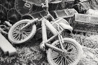 Keywords: bike frozen winter snow cold bicycle frost white ice weather nature covered cycling outdoor seasonal biking wheel