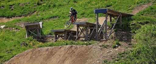Keywords: bike human person sport bike park obstacle jump action out nature cycling hill