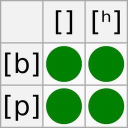 | Keywords: Bilabial plosives 4.svg en Table of bilabial plosive phones showing all present as in Hindi/Urdu Own work by uploader hand-written SVG to match design of original bitmap version Qef 2009-09-20 Original bitmap version File Bilabial plosives 4 PNG cc-zero Minimal pairs |
