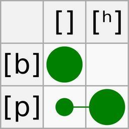 | Keywords: Bilabial plosives English.svg en Table of bilabial plosive phones present in English Own work by uploader hand-written SVG to match design of original bitmap version Qef 2009-09-20 Original bitmap version w File Bilabial plosives English PNG cc-zero Minimal pairs |