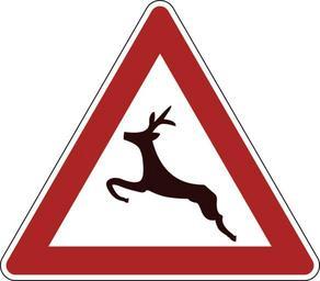 | Keywords: Bild 2g Wildwechsel, StVO 1956.svg de Bild 2g Wildwechsel Für den Rotton wurde das RAL-Farbtonregister 840 R gewählt Der dort verzeichnete Rotton RAL 3000 ist in der Abbildung wiedergegeben Zeichen dieser Art wurden bis zur StVO 1970 hergestellt Dann änderte sich der Rotton der Umrandung Verkehrszeichen nach den Vorgaben der StVO in der Fassung vom 29 März 1956 Quelle Bundesgesetzblatt Jahrgang 1956 Nr 19 S 351 Tag der Ausgabe Bonn 29 Mai 1956 own Mediatus 2013-09-02 v Cc-zero PD-VzKat Diagrams of danger warning road signs of Germany 1956 set 02g Deer-related warning road signs |