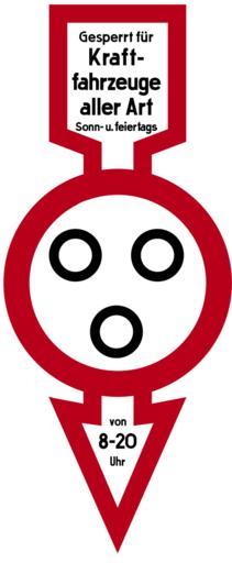 | Keywords: Bild 67 - Gesperrt für Kraftfahrzeuge aller Art - Sonn- und feiertags, StVO 1937.svg de Bild 67 Gesperrt für Kraftfahrzeuge aller Art Sonn- und feiertags Verkehrszeichen nach dem Reichsgesetzblatt 123 vom 16 November 1937 S 1212 Die Typographie wurde von einem historischen Vorbild übernommen Die Bemaßung entspricht den damaligen Vorgaben Das Schild war insgesamt 1200 mm hoch Der Kreisdurchmesser hatte 500 mm Der Pfeil war oben und an den Pfeilenden 300 mm breit seine Umrandung war mit 40 mm etwas schmäler als die des Kreises own selbst gezeichnet von Mediatus Mediatus 26 Dezember 2013 Herstellungsdatum Cc-zero PD-VzKat German language signs Diagrams of historic road signs of Germany 1929 set Diagrams of miscellaneous road signs of Germany 1934 set Diagrams of deprecated road signs of Germany 1938 set 67 SVG road signs in Germany |