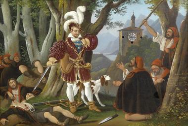 | Keywords: Bilderuhr Maximilian I mit den Räubern.jpg oil metal 91 x 67 cm http //www dorotheum com 1840 Creator Anonymous PD-Art-100 Maximilian I Holy Roman Emperor 1840s paintings Brigands Feathered headdresses in art male Paintings with inscriptions 19th-century paintings location missing Images from Dorotheum Picture clocks |