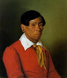 | Keywords: Bildnis des Botokuden Quäck von Karl zu Wied-Neuwied.jpg Botokude-Indianer Joachim Quäck Quäck portugiesisch Kuêk ursprünglich Nuguäck vermutlich um 1800 im brasilianischen Bundesstaat Minas Gerais in Brasilien; 1 Juni 1834 in Neuwied traf 1817 als Minderjähriger den deutschen Entdecker Ethnologen Zoologen und Naturforscher Prinz Maximilian zu Wied-Neuwied in Brasilien Quäck wurde für Maximilian zum einheimischen Reisebegleiter der ihm das für seine Forschungen notwendige Hintergrundwissen vermittelte Maximilian ließ ihn nach Europa nachkommen Am 12 Februar 1818 kam Quäck in Neuwied an Dort arbeitete er für Maximilian als dessen persönlicher Kammerdiener Quäck verstarb im Alter von 34 Jahren am 1 Juni 1834 um 9 Uhr morgens an einer Leberentzündung und wurde am 3 Juni 1834 vermutlich auf dem Alten Friedhof von Neuwied katholisch beerdigt Öl auf Leinwand 62 cm x 51 5 cm Um 1830 Abgebildet in dem Buch Brasilien-Bibliothek der Robert-Bosch-GmbH Katalog Band II Nachlaß des Prinzen Maximilian zu Wied-Neuwied Teil 1 Illustrationen zur Reise 1815 bis 1817 in Brasilien Bearb von Renate Löschner ISBN 3-421-02938-5 Bild Nr 237 auf Seite 207 Karl Prinz zu Wied-Neuwied 1785-1864 Bruder von Prinz Maximilian zu Wied-Neuwied Um 1830 PD-old-100 PD-old Joachim Quäck |