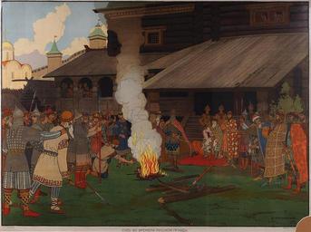 | Keywords: Bilibin justice.jpg Corte ai tempi della Russkaja Pravda Acquerello // Dipinti sulla storia Russa Ed Knebelâ 1913 / Corte reale БИЛИБИ ИВА ЯКОВЛЕВИЧ 1876-1942 Суд во в емена Русской П авды 1909 г Лист 5 из се ии «Ка тины по усской исто ии» Изд И Кнебеля Х омолитог афия 63 5 х 85 5 см http //www vnikitskom ru/antique/auction/80/34853/ s 1890 Creator Ivan Bilibin PD-RusEmpire Works by Ivan Bilibin Justice in art Fire in art Scenes from Russian history Knebel 05 | ||||