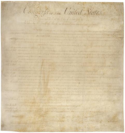 | Keywords: Bill of Rights WDL2704.png Artwork ru П авительство Соединенных Штатов fr États-Unis en United States zh 美国政 pt Estados Unidos ar حكومة الولايات المتحدة es Estados Unidos ru Билль о п авах fr Déclaration des droits en Bill of Rights zh 人 法案 pt Declaração de Direitos ar ميثاق الحقوق ru В ходе дебатов о п инятии Конституции США ее оппоненты утве ждали что п инятие Конституции в ее че новом ва ианте в езультате п иведет к ти ании со сто оны цент ального п авительства В их памяти были свежи воспоминания о на ушении г ажданских п ав б итанцами до и в ходе Революционной войны поэтому они т ебовали п инять Билль о п авах в кото ом должны быть изложены положения о неп икосновенности отдельных г аждан В ходе официальной атификации Конституции законодательные соб ания некото ых штатов пот ебовали внесения этих поп авок Остальные штаты согласились атифици овать Конституцию полагая что поп авки будут п едложены Таким об азом 25 сентяб я 1789 года Пе вый Конг есс Соединенных Штатов п едложил законодательным о ганам штатов 12 поп авок к Конституции в кото ых соде жались ответы на основные а гументы выдвигаемые п отив Конституции Пе вые две п едложенные поп авки в кото ых оп еделялось количество изби ателей на каждого п едставителя и азме жалования не были атифици ованы Однако статьи поп авок с 3 по 12 были п иняты за них п оголосовало т и четве ти п едставителей законодательных соб аний штатов и они п едставляют собой пе вые десять поп авок к Конституции известные под названием Билль о п авах <br>Поп авки к Конституции; Конституции; Политика и уп авление fr Au cours des débats sur l'adoption de la Constitution des États-Unis ses opposants firent valoir que la Constitution telle que rédigée ouvrirait la voie à la tyrannie du gouvernement central Ils gardaient encore en mémoire la violation britannique des droits civils avant et pendant la guerre d'indépendance aussi exigèrent-ils une charte des droits qui proclamerait les droits des citoyens individuels Plusieurs conventions d'État dans leur ratification formelle de la Constitution demandèrent de telles modifications D'autres ratifièrent la Constitution en pensant que les amendements seraient proposés Le 25 Septembre 1789 le premier Congrès des États-Unis proposa donc aux législatures d'État 12 amendements à la Constitution qui se heurtèrent aux arguments les plus souvent avancés à leur encontre Les deux premiers amendements proposés qui portaient sur le nombre d'électeurs pour chaque représentant et sur la rémunération des membres du parlement ne furent pas ratifiés Les articles 3 à 12 cependant furent ratifiés par les trois quarts des législatures des États et constituent les dix premiers amendements de la Constitution connus sous le nom de Déclaration des Droits Bill of Rights <br>Amendements constitutionnels; Constitutions; Politique et gouvernement en During the debates on the adoption of the U S Constitution its opponents charged that the Constitution as drafted would open the way to tyranny by the central government Fresh in their minds was the memory of the British violation of civil rights before and during the Revolutionary War so they demanded a bill of rights that would spell out the immunities of individual citizens Several state conventions in their formal ratification of the Constitution asked for such amendments Others ratified the Constitution with the understanding that the amendments would be offered On September 25 1789 the First Congress of the United States therefore proposed to the state legislatures 12 amendments to the Constitution that met the arguments most frequently advanced against it The first two proposed amendments which concerned the number of constituents for each representative and the compensation of congressmen were not ratified Articles 3 to 12 however were ratified by three-fourths of the state legislatures and constitute the first ten amendments of the Constitution known as the Bill of Rights <br>Constitutional amendments; Constitutions; Politics and government zh 就美国宪法实施问题的辩论上, 反对 指责说 起草的宪法为中央政 专制 辟了道路 他们记忆犹新的是英国 美国独立战争前和 间对民 的侵犯,因此他们要求制定 利法案 阐明公民个人的豁免 多个州的制宪大会 他们对宪法的正式签署中要求增加此项修正案 其他州认为将会实施该修正案因此也签署了宪法 因此,1789 年 9 25 日,美国第 届国会提出州立法 构 12 宪法修正案,这些能解决针对宪法 常提出的争议 提议的前两 修正案关注的是每位议员 代表的 民数量以及国会议员的薪酬问题,都没 获得批准 但是,第 3 至第 12 修正案都获得了州议会 构四分之三的批准 过,成为美国宪法的前十个修正案,这些修正案被称为 利法案 <br>宪法修