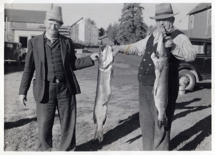 Keywords: george salmond georgesalmond bill sherman billsherman salmond's resort salmondsresort cloyne mississagagon lake mississagagonlake fishing fish lake trout laketrout guide anglers tourism outdoor George owned Salmond's Resort on Mississagagon Lake near Cloyne, Ontario. These men caught some fine Northern Pike. Unknown date. George owned Salmond's Resort on Mississagagon Lake near Cloyne, Ontario. These men caught some fine Northern Pike. Unknown date.