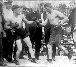 | Keywords: Billy Murray (boxer).jpg George Chip vs Billy Murray on the right ggbain 17186 Created/Published ca 1914-11-07 Date created or published later by Bain According to http //cyberboxingzone com/boxing/chip-g htm cyberboxingzone com and http //boxrec com/list_bouts php human_id 011253 cat boxer pageID 2 boxrec com maybe July 4 or September 30 of that year No known restrictions on publication Creator s Bain News Service publisher http //www loc gov/pictures/resource/ggbain 17183/ PD-Bain Boxers from the United States |