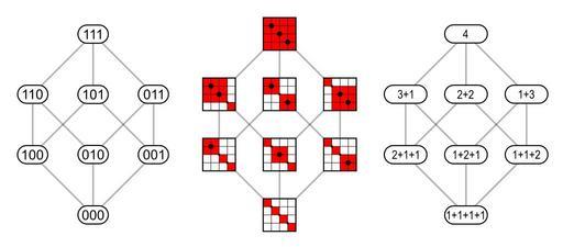 | Keywords: Binary and compositions 4.svg Compositions of a number n correspond to n-1 digit binary numbers Left cube 3 digit binary numbers Central cube Logical matrices of equivalence relations as in 200px Right cube Compositions thumb center 600px The same with 4 bit binary numbers and compositions of 5 own 2010 mate2code Printable version File Binary and compositions 4 and 5 pdf Binary numeral system Equivalence relation matrix Cube Hasse diagrams Unassessed QI candidates | ||||