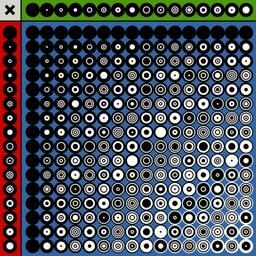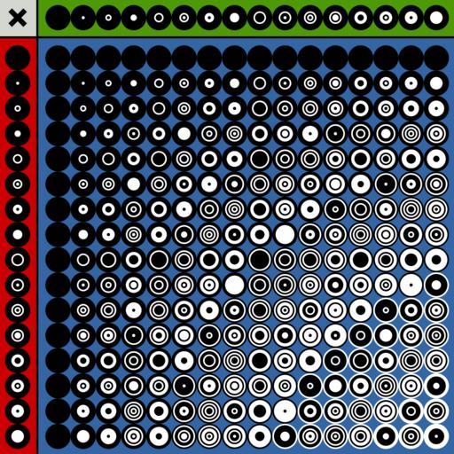 | Keywords: Binary Operations - Multiplication.svg Binary ring diagram to illustrate operators on binary numbers The least significant bit LSB is the innermost ring Black signifies 0 white signifies 1 X is the number along the top Y is the number on the left Q is the result Plain multiplication <br> <math>Q X+Y\ </math> Note the result has twice as many bits as the operands own 2009-09-20 Inductiveload Own work all rights released Public domain Binary ring diagrams Multiplication | ||||