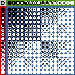 | Keywords: Binary Operations - OR operator.svg Binary ring diagram to illustrate operators on binary numbers The least significant bit LSB is the innermost ring Black signifies 0 white signifies 1 X is the number along the top Y is the number on the left Q is the result Bitwise OR operator <math>Q A \mbox OR B</math> own 2009-09-20 Inductiveload Own work all rights released Public domain Binary ring diagrams OR gates | ||||