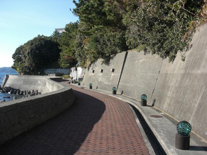 Keywords: Bindama road.jpg en This is a seaside sidewalk in Hamajima-cho Hamajima Shima Mie Japan ja びん玉ロード(三重 志摩市 島町 島) own Miyuki Meinaka 2009-03-26 Public domain Hamajima Shima Ise-Shima National park Fishing balls
