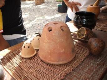 Keywords: Bindes.jpg Big binde and two small bindes for making cuscuz Own 2007-08 Xandu Crafts of Cape Verde Couscous in Cape Verde Couscous-makers