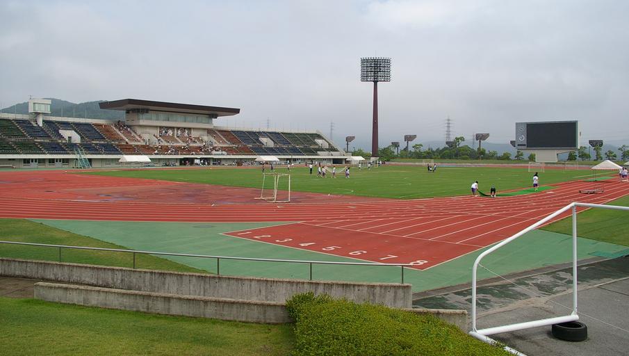 Keywords: Bingoriku1.jpg en Bingo Sports Park Main Stadium ja びんご運動公 陸上競 場 ピッチとメインスタンド 撮影 自身による投稿 Waka77 2006-07-08 Bingo Sports Park Athletics Stadium