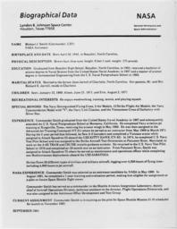 | Keywords: Biographical Data, Ellison S. Onizuka - NARA - 198457.tif Scope and content A NASA fact sheet giving basic information on Michael J Smith one of the astronauts killed in the January 1986 space shuttle Challenger explosion General notes 198457 Local identifier President 1981-1989 Reagan White House Office of Records Management 01/20/1981 - 01/20/1989 Ronald Reagan Library NLRR 40 Presidential Drive Simi Valley CA 93065-0600 Record group Collection RR-WHORM White House Office of Records Management File Systems White House Central Files 01/20/1981 - 01/20/1989 Record group ARC 1191 White House Office of Records Management WHORM Subject File compiled 01/20/1981 - 01/20/1989 Series ARC 198419 File unit White House Office of Records Managment WHORM Subject File case file OS001 381110 01/28/1986 - 02/05/1986 File unit ARC 198442 Variant control numbers NAIL Control Number NLS-WHORM-SF-PR007PR007 02 366115-366115 3 yes Other versions NARA-cooperation PD-USGov Space Shuttle Challenger disaster |
