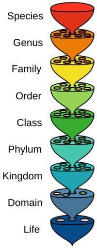 | Keywords: Biological classification L Pengo tweaked.svg Caption Classifying the diversity of organic life Diagrammatic illustration of the biological classification system Classification levels Species Genus Family Order Class Phylum Kingdom Domain About the Domains/Kingdoms This diagram implies 3 Domains / 6 Kingdoms Woese et al 1990<ref name Woese1990 >Carl R Woese Otto Kandler Mark L Wheelis Towards a Natural System of Organisms Proposal for the domains Archaea Bacteria and Eucarya doi 10 1073/pnas 87 12 4576</ref> Archaea Domain and Kingdom Eukarya Domain Protista Kingdom Fungi Kingdom Animalia Kingdom Plantae Kingdom Bacteria Domain and Kingdom References <references /> Software Created in 20px Inkscape v0 45 Other versions Other versions/Biologia klasifiko L Pengo See also Image Scientific classification png Pengo en If you wish to credit the illustration please credit Peter Halasz I have now released these Biological classification images into the public domain Prior to 2012 they were released under Creative Commons licenses Attribution-Share Alike 2 5 Generic and Creative Commons Attribution-Share Alike 3 0 Unported Taxonomy diagrams cc-by-sa-3 0 English text |