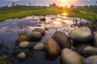 Keywords: biotope jungle habitat pond stone sunset landscape singapore