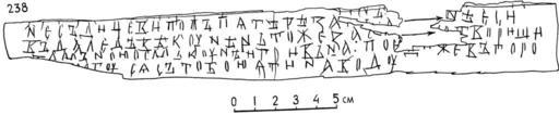 | Keywords: Birch-bark letter № 238.gif en Birch-bark letter 238 from Novgorod ru Бе естяная г амота 238 дати уемая концом XI началом XII вв айдена в овго оде в аскопе е евский усадьба «И» Соде жание вызов на испытание водой http //gramoty ru/index php no 238 act full key bb author 1100 1120 B C PD-Trivial PD-old-100 Birch bark documents |