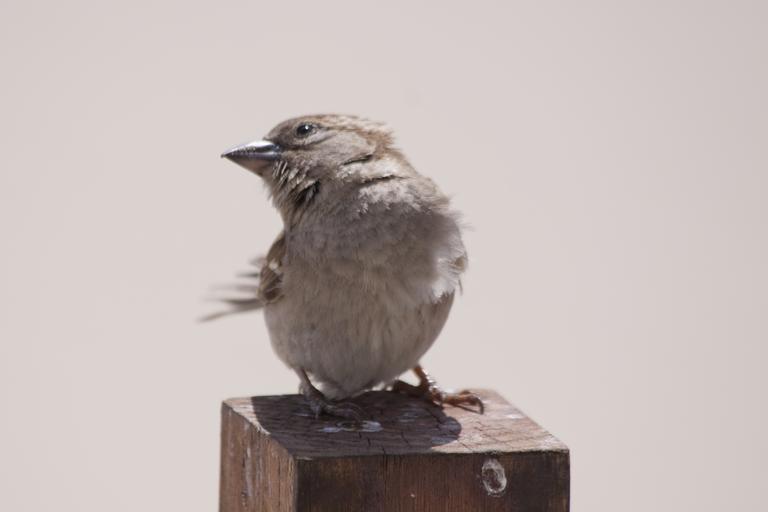 Keywords: bird animal sparrow nature cute look up pile of wood peg wood pile