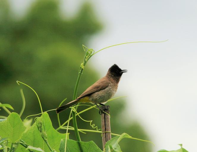 Keywords: bird black eyed bul-bul black and brown beak open grapevine fly wings feather wildlife beak wild freedom outdoor avian majestic creature wilderness nature mammal vertebrate animal