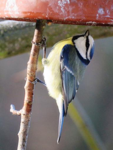 Keywords: bird blue tit garden small bird foraging feeding twitter blue