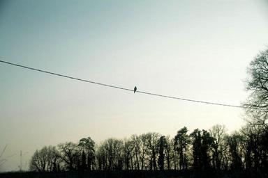 Keywords: bird cable wire sunset sky trees
