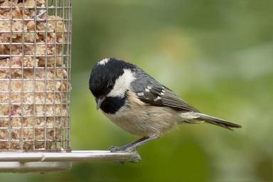 Keywords: bird coal tit foraging fat balls garden