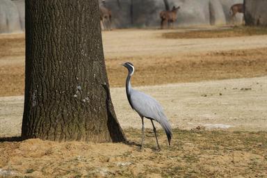 Keywords: bird common crane animal tree shadow pen bark outside legs soil crane zoo animals horizontal