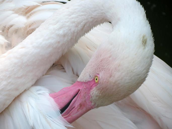 Keywords: bird flamingo nature beak exotic pink flamingo feather zoo enclosure pink neck