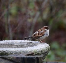 Keywords: bird house sparrow passer domesticus plumage birdbath