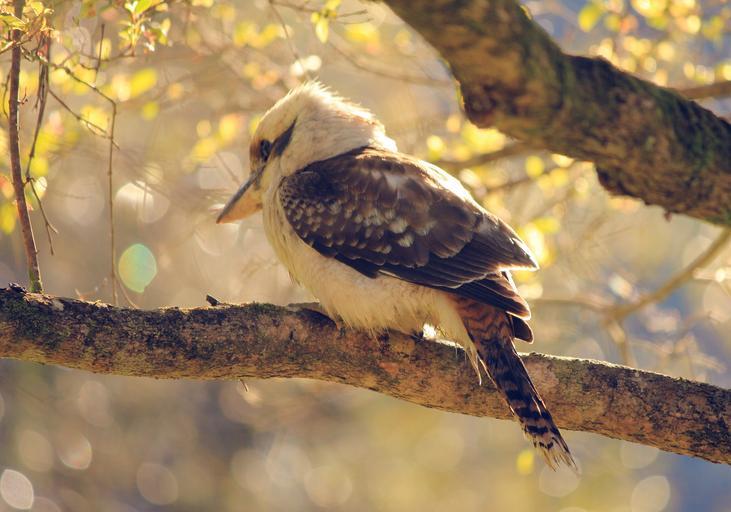 Keywords: bird kookaburra hunter kingfisher wildlife animal australia nature wild carnivorous avian wing plumage native brown feathers natural perched