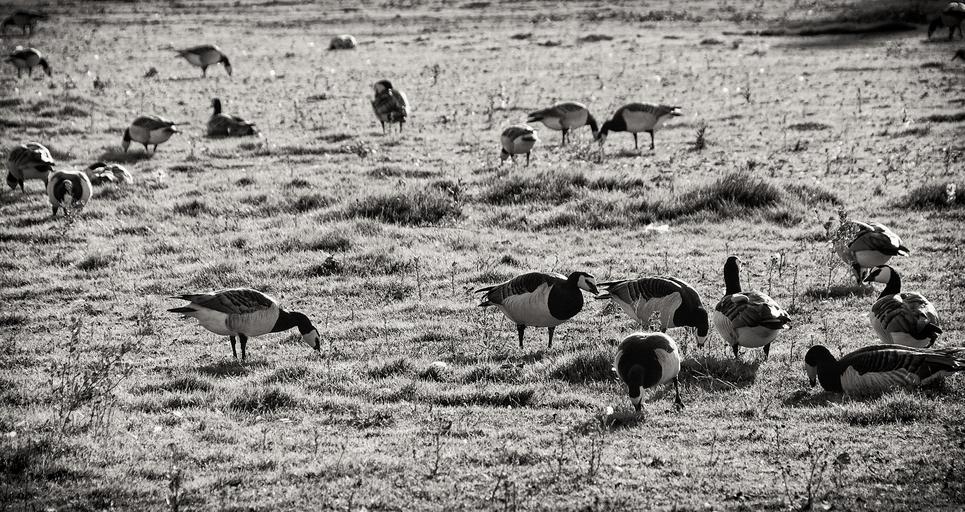 Keywords: bird loft flock goose black white bw black and white grass field