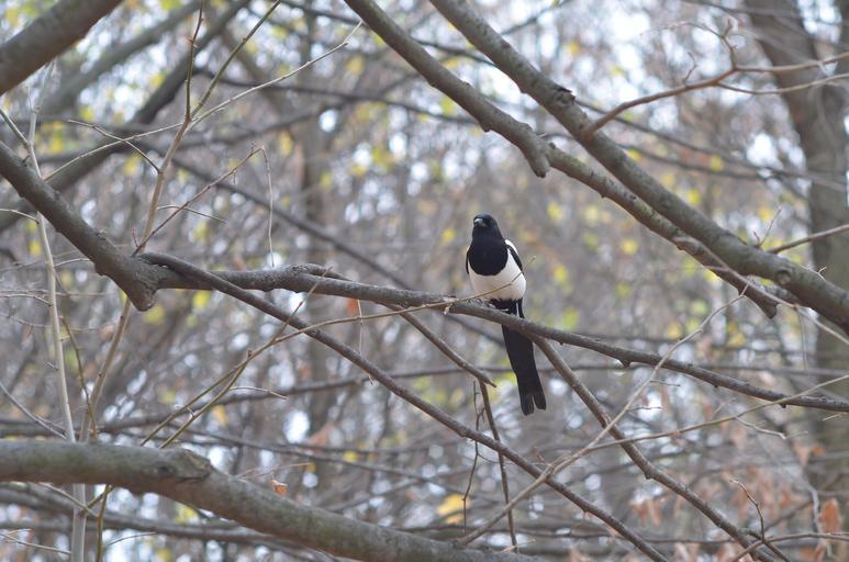 Keywords: bird magpie autumn tree branch nature wild life