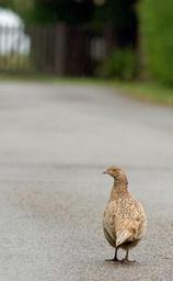 Keywords: bird pheasant beautiful nature female hen game bird close-up standing road cute